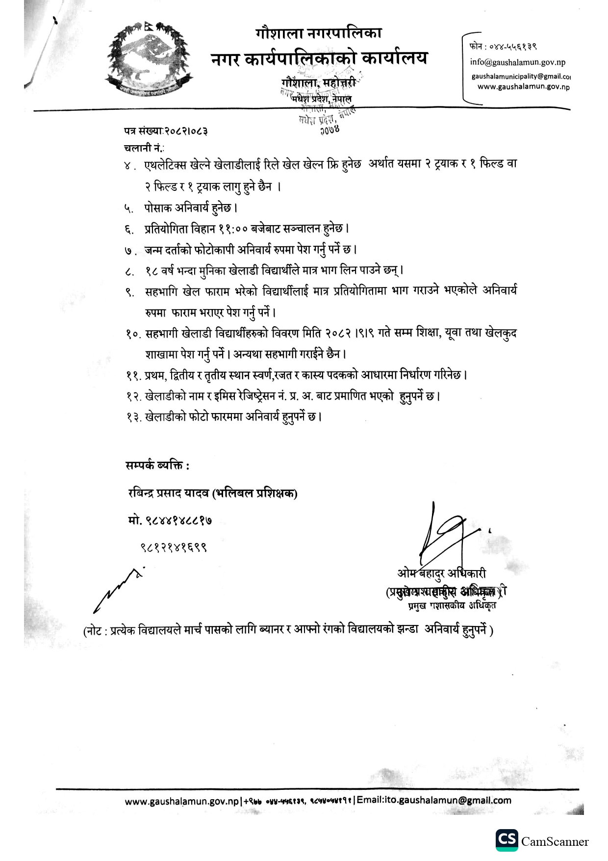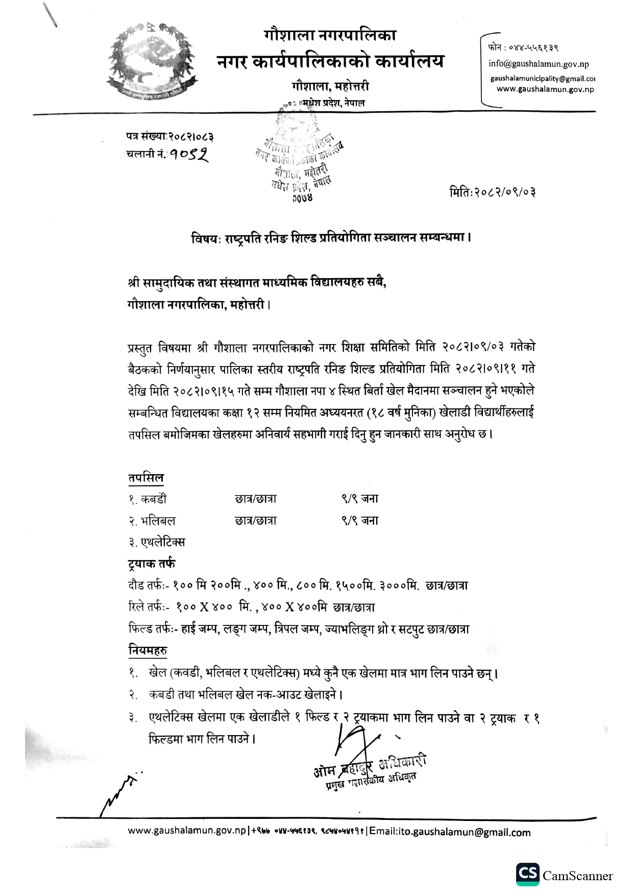 रास्ट्रपति रनिंग शिल्ड प्रतियोगिता संचालन सम्बन्धमा