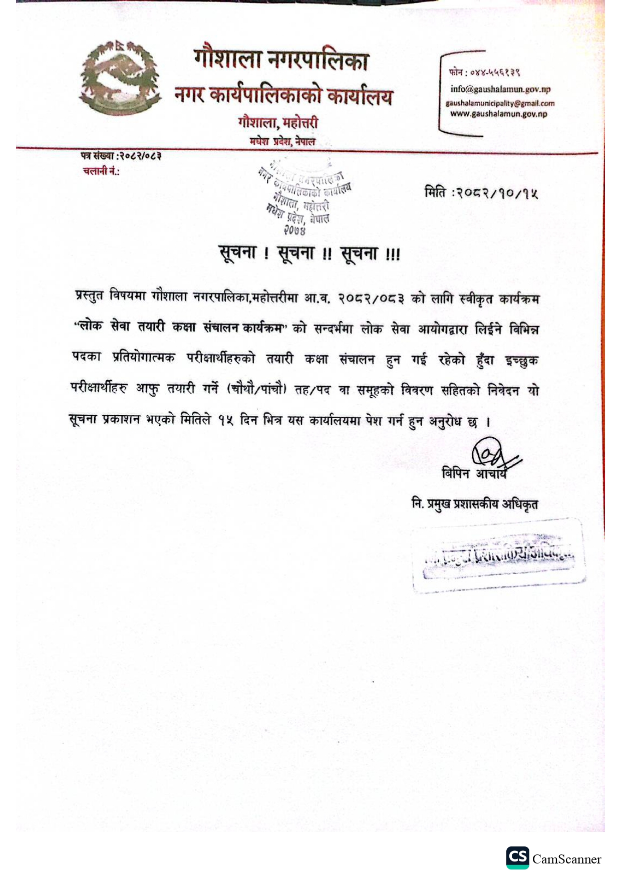 लोक सेवा तयारी कक्षा संचालन कार्यक्रम सम्बन्धी सूचना !
