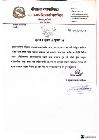 गौशाला नगरपालिकाको आ.व. २०८२/०८३ को योजना तथा कार्यक्रम