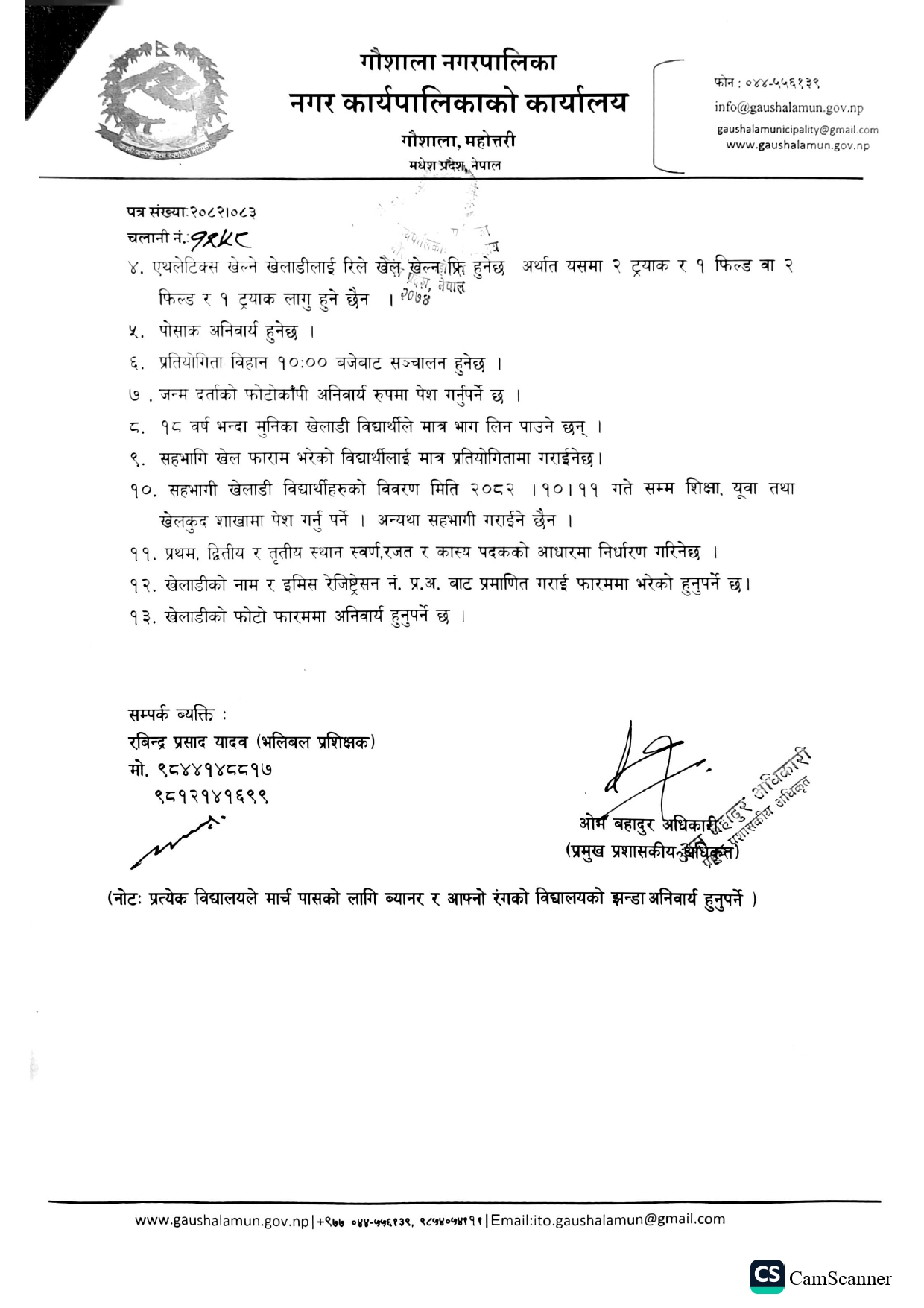 » रास्ट्रपति रनिंग शिल्ड प्रतियोगिता संचालन सम्बन्धमा !