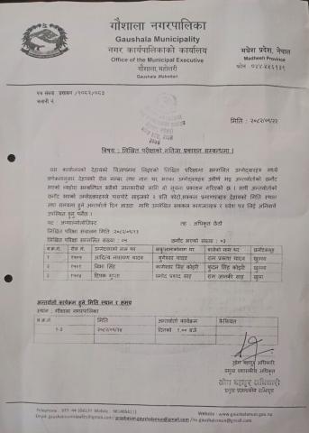 लिखित परीक्षाको नतिजा प्रकाशन सम्बन्धमा