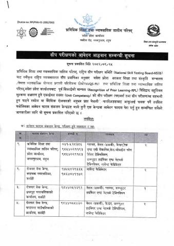 » प्राविधिक शिक्षा तथा व्यवसायिक तालिम परिषद, मधेश प्रदेशको सीप परीक्षणको आवेदन आह्वान सम्बन्धी सूचना !